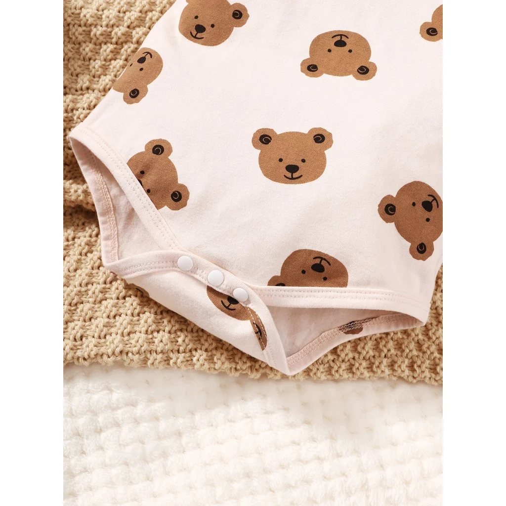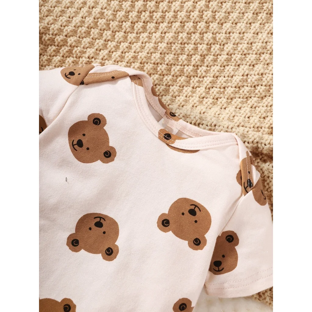 0-9 Months Newborn Baby Boy 4PCS Clothing Set Bear Print Short Sleeve Bodysuit+Pants+Hat+Sock Cute Baby Photograph Outfit