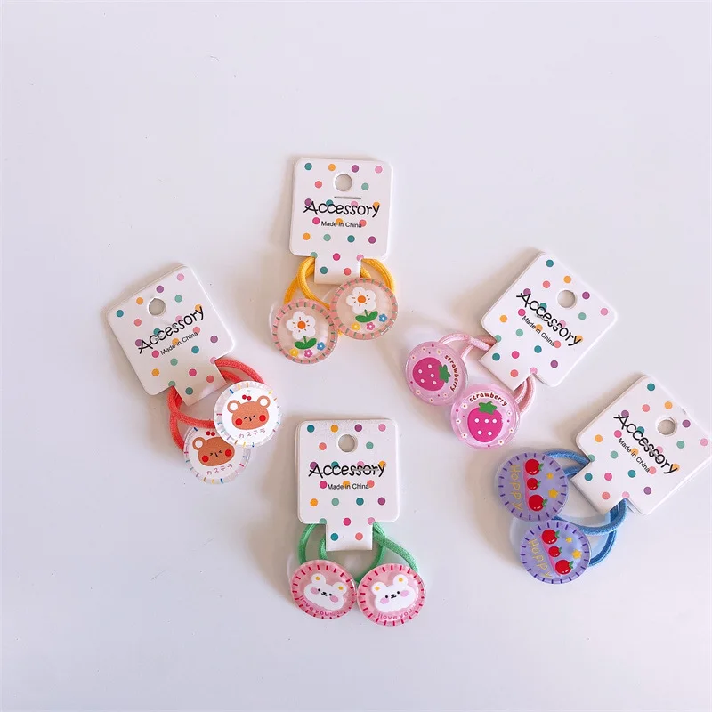 2pcs Cute Baby Hair Bands Cartoon fruit animals Mini Elastic Hair Ring Rope for Little Girls Baby Hair Small Kids Accessoires