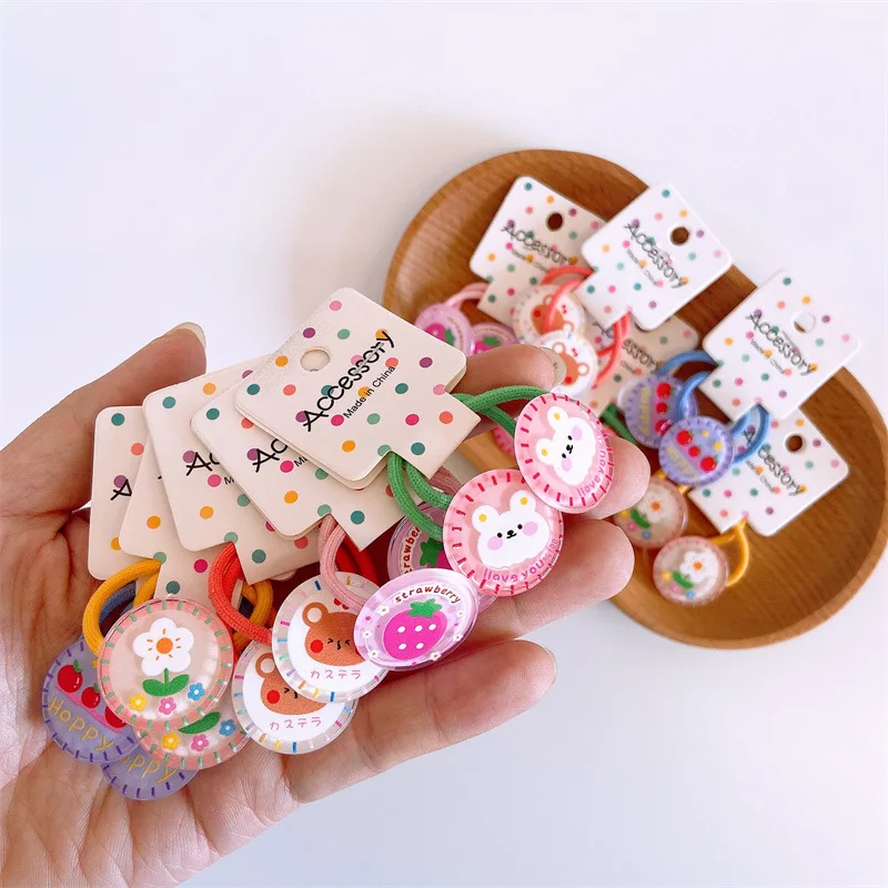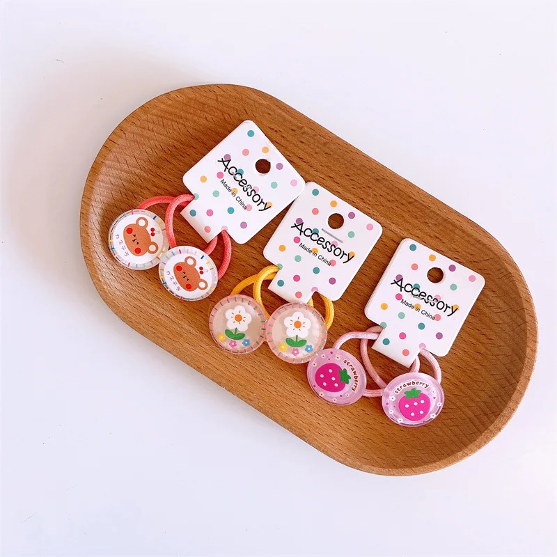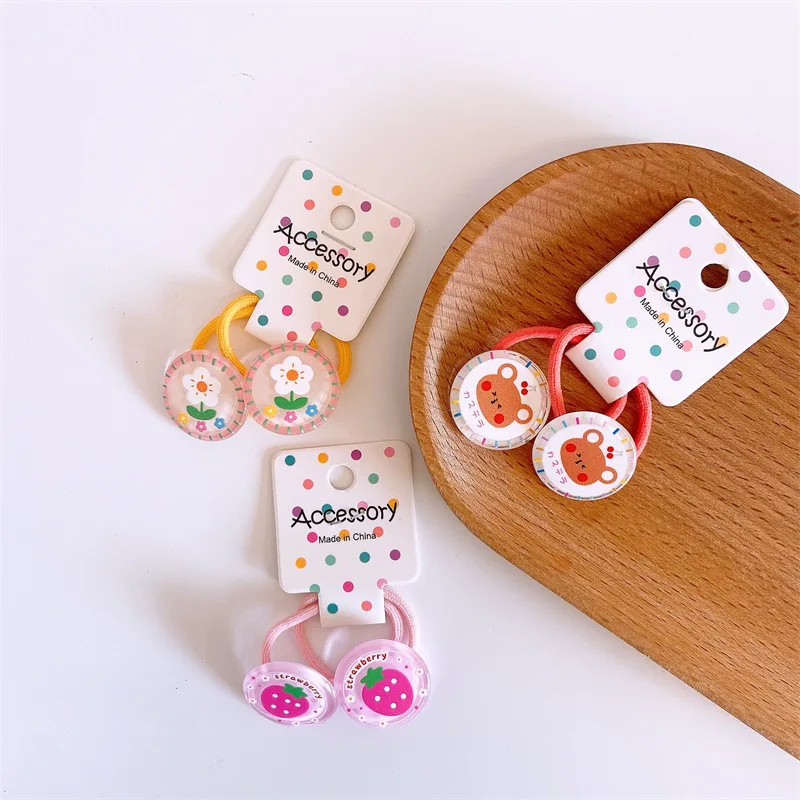 2pcs/set Cartoon Fruit Animals Elastic Hair Ring Rope Tie Cute Kawaii Baby Rubber Hair Bands Headband for Girls Kids Accessoires