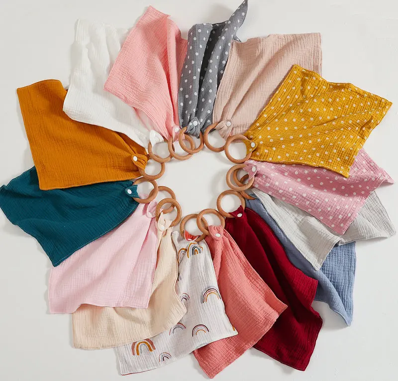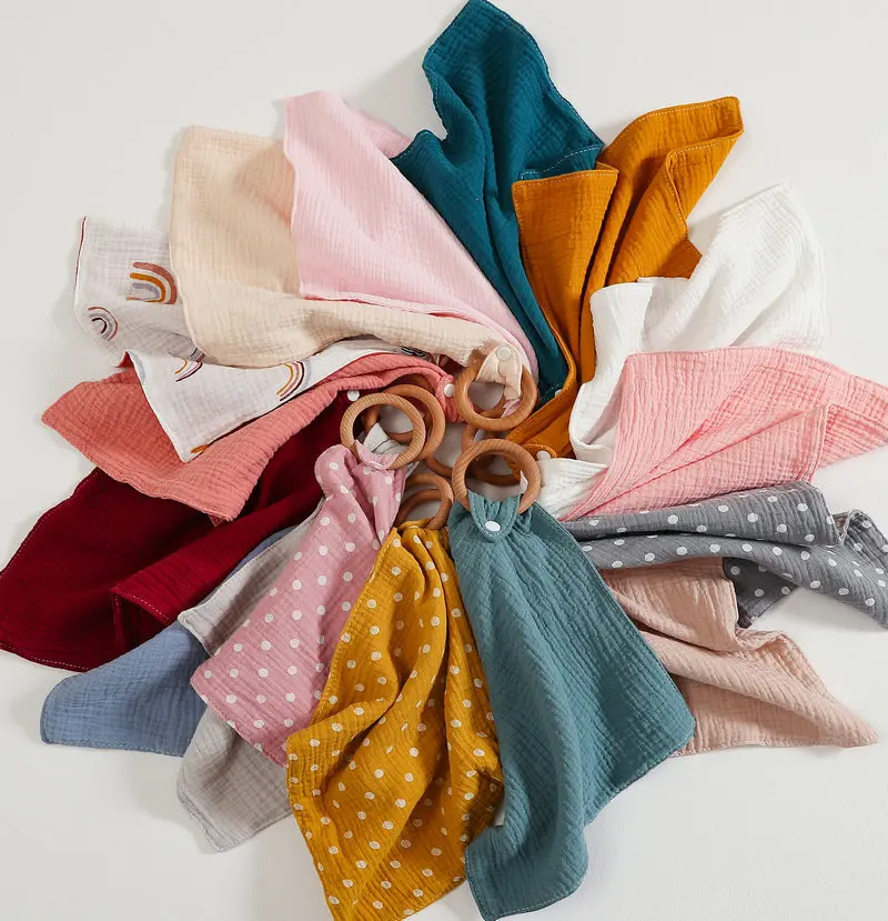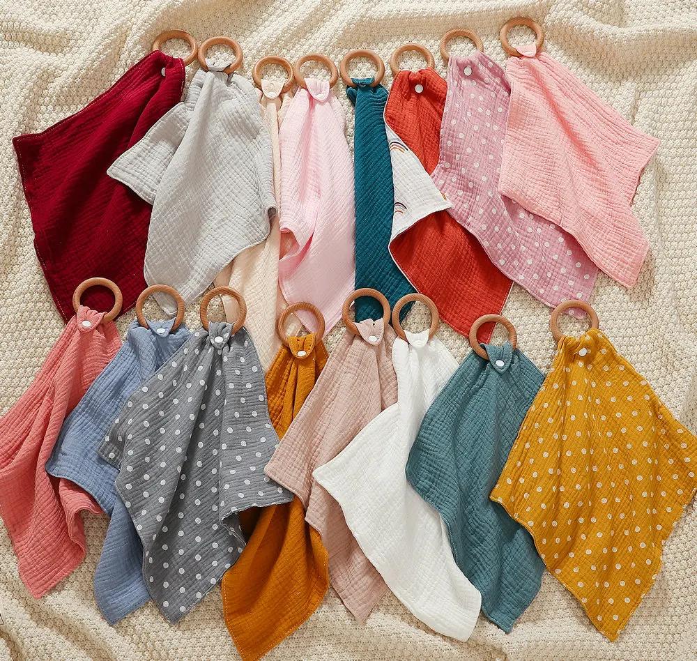 4 layer cotton baby comforting blanket wooden ring with cotton muslin soothing towel accessoire bébé garçon