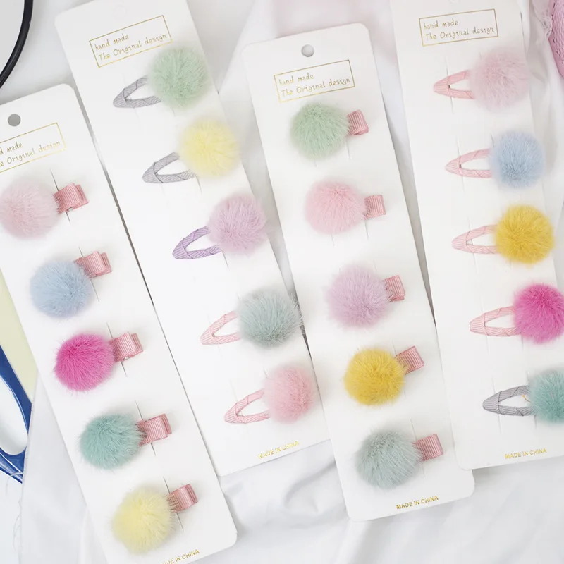 5pcs/set Mini Hair Pin Clips Costume Bobbles Barrettes Cute Kawaii Solid Candy Color Pompoms Baby Hairpins for Girls Accessoires