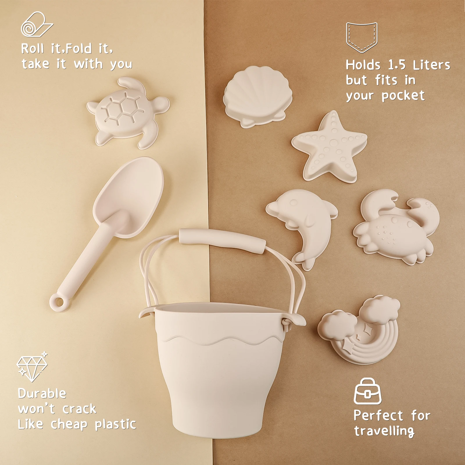 【Safe and non-toxic】Our beach toy set is safe and non-toxic, no peculiar smell, not easy to accumulate bacteria, not easy to mold, users can rest assured.