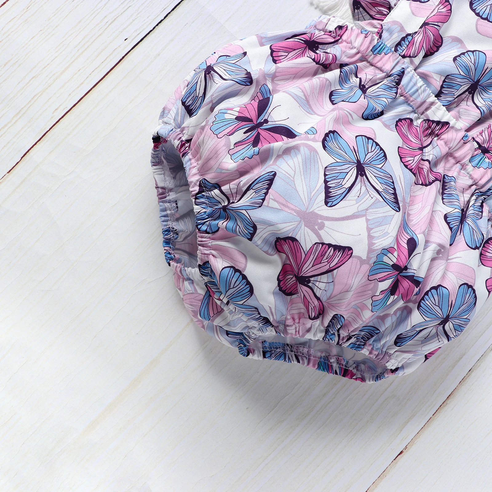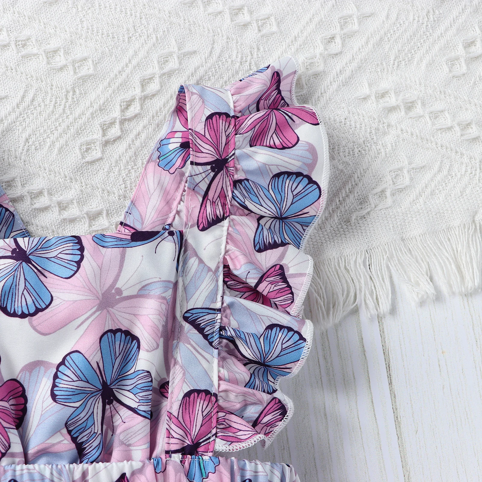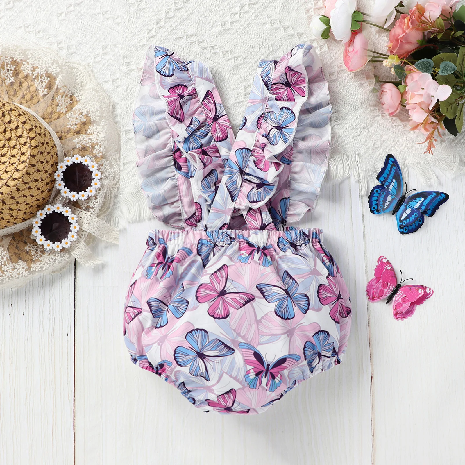 Baby Girls Cute Butterfly Print Ruffled Sleeves Square Collar Onesie Comfortable Breathable Baby Summer Clothes