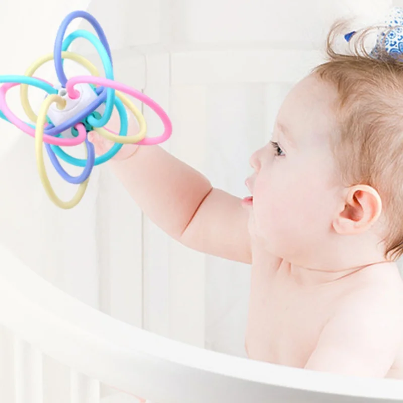 Baby hand grasp ball rattles fitness soft rubber hand rattles fish string teether infant 0-1 years old educational toys