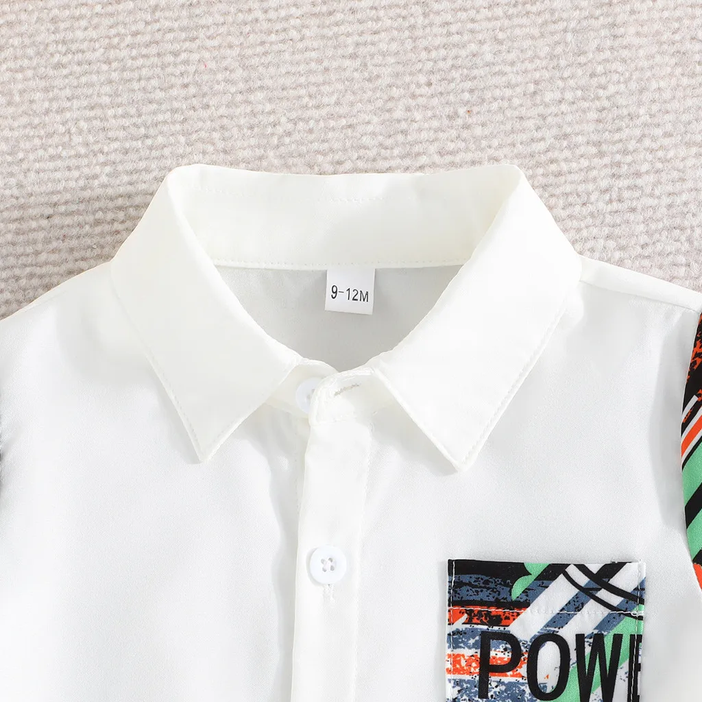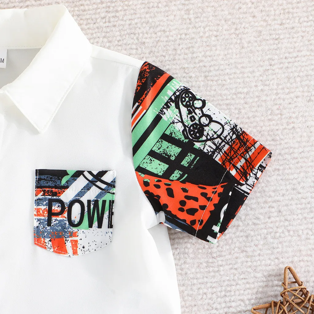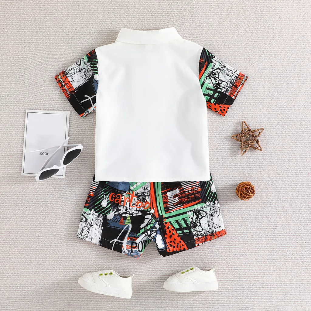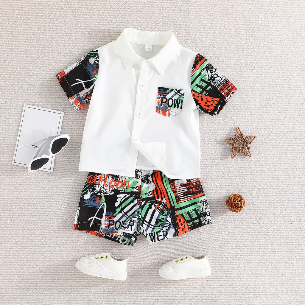 Clothing Set For Kids Boy 6-36 Months Cartoon Comic Doodle Pocket Short Sleeve Blouse and Shorts Summer Outfit For Newborn Baby