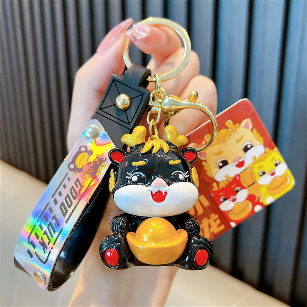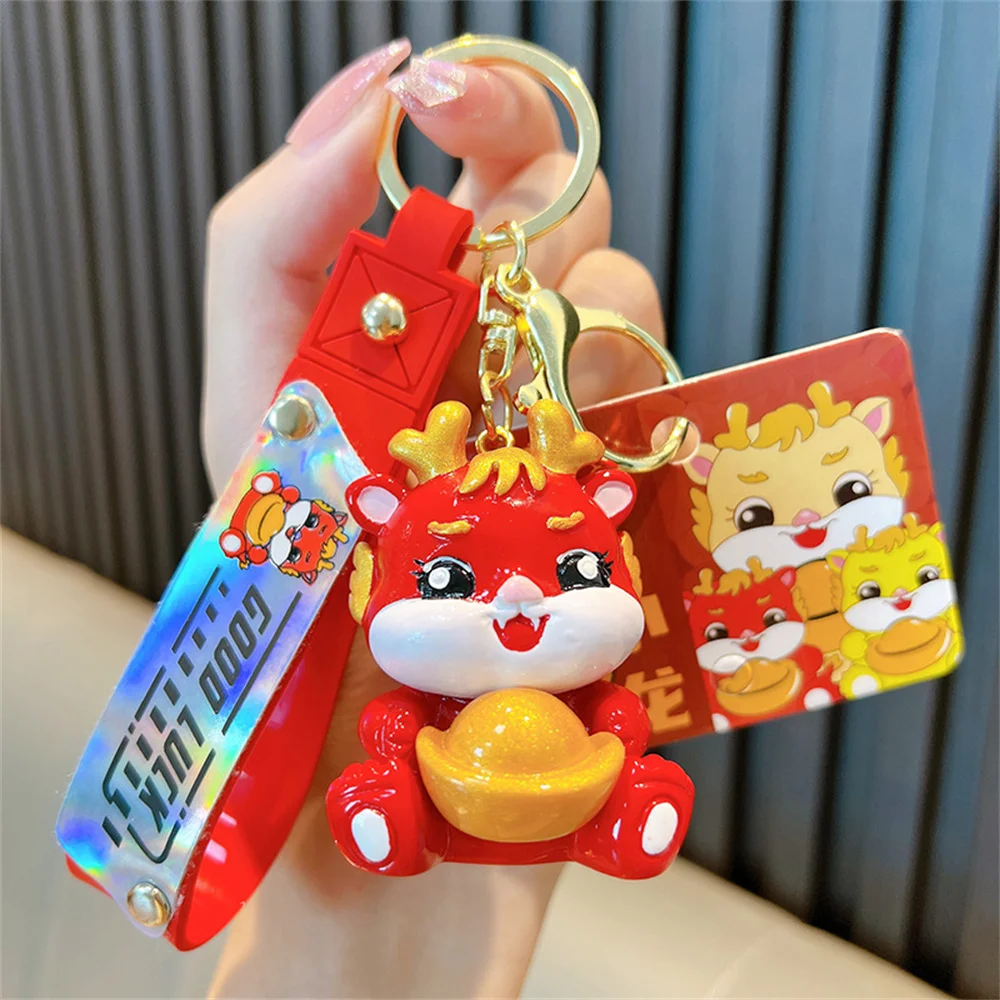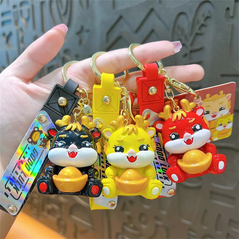 Cute Dragon Baby Keychain Cartoon Keyring Soft Rubber Bag Pendant Backpack Decoration Jewelry Kids Gifts New Year 2024