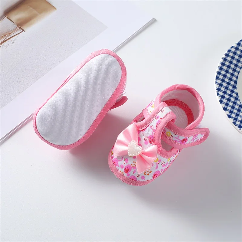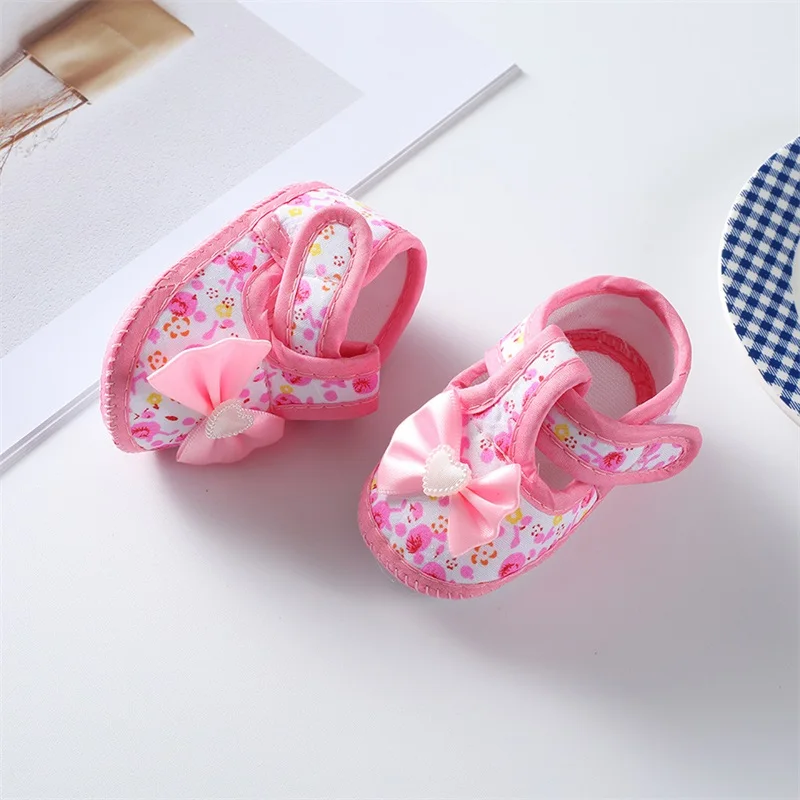 Infant Baby Girls Shoes Soft Sole Cribs Sneakers Flat First Walkers Bowknot Flower Print Non-slip Princess Wedding Dress Shoes
