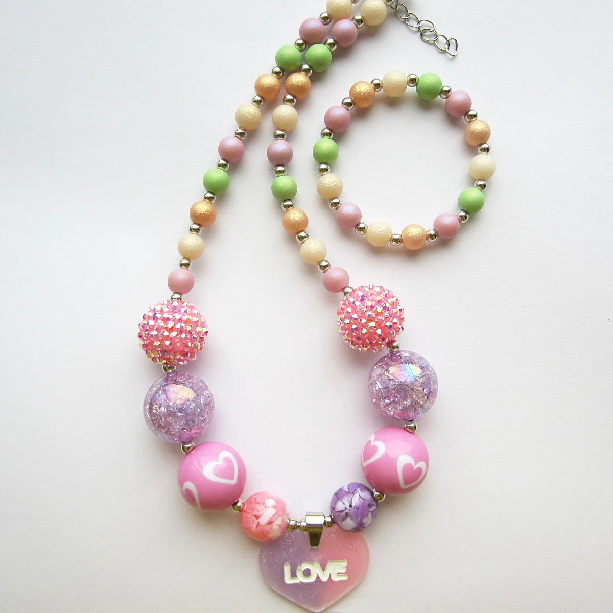 - Description: Kid chunky toddler jewelry accessories necklace Bubblegum Bracelet set
