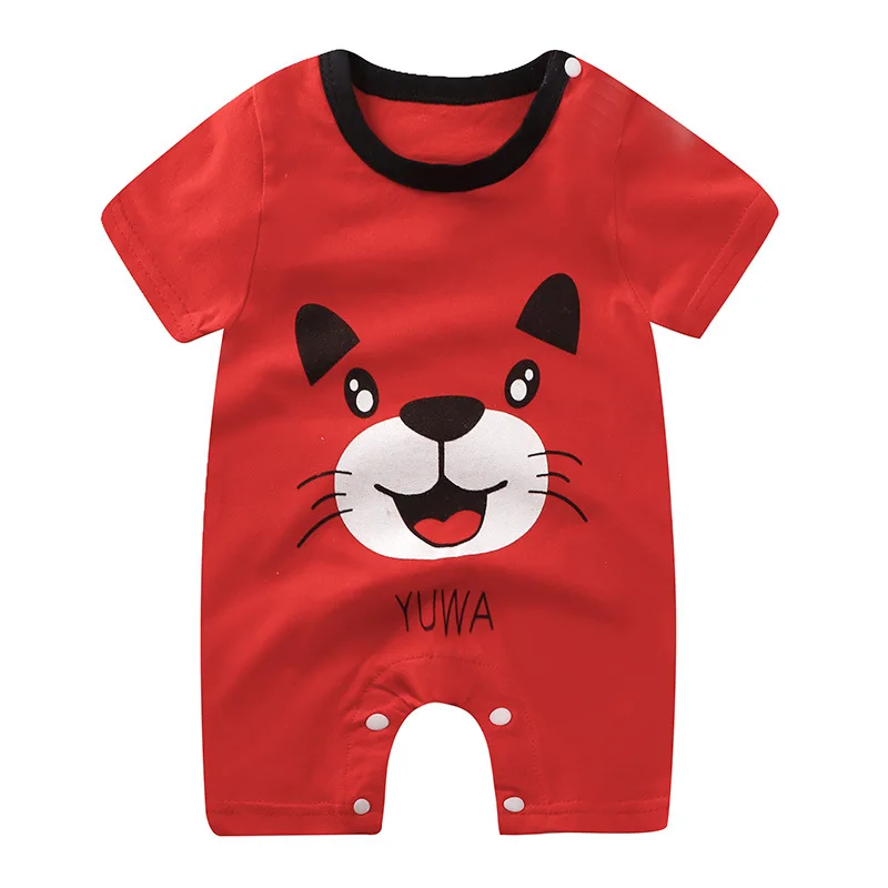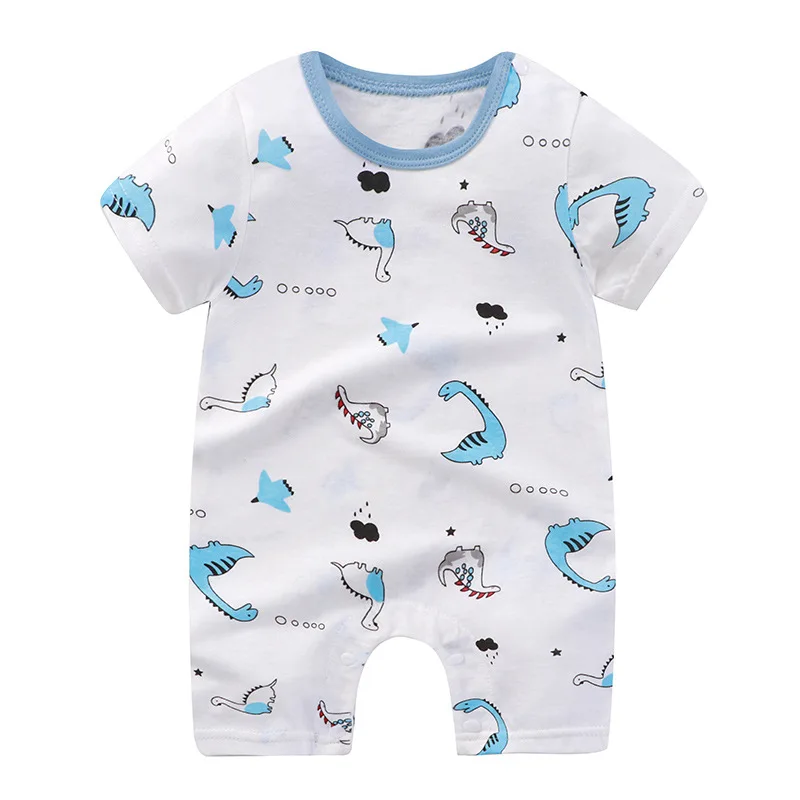 New Summer Baby Clothing Newborn Boys Girls Short-sleeved Cartoon Print Section Open File Climbing Clothing Baby Jumpsuit Romper