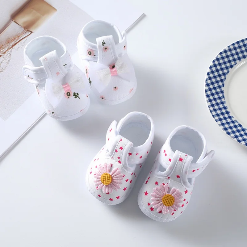 Newborn Baby Girl First Walkers Soft Sole Crib Toddler Shoes Infant Baby Girls Cute Floral Bow Shoes